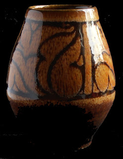 Here's a Poole Pottery look-alike from eBay. The base is stamped Lancastrian Pottery England, and the vase was made by Plilkingtons Royal Lancastrian Pottery. But the shape and dimensions are remarkably similar to the Delphis shape 41 vase below, a shape first introduced to Poole by John Adams in the 1930's. I don't know if this is the result of an early cross-pollination between the two potteries but in 1964 the two tile factories did in fact merge, with Poole Pottery too being absorbed into same conglomerate in 1971.
